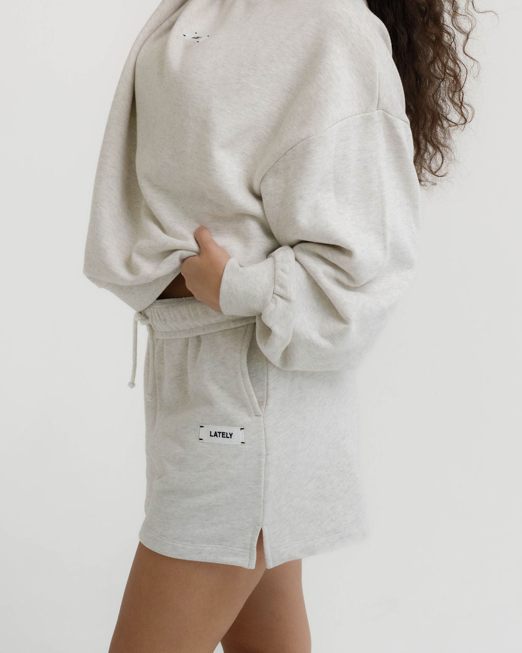 The A-line Shorts are designed for a slightly oversized fit with an a-line flare. Wear them rolled or unrolled for your desired fit, finished with our signature Lately stitched label.