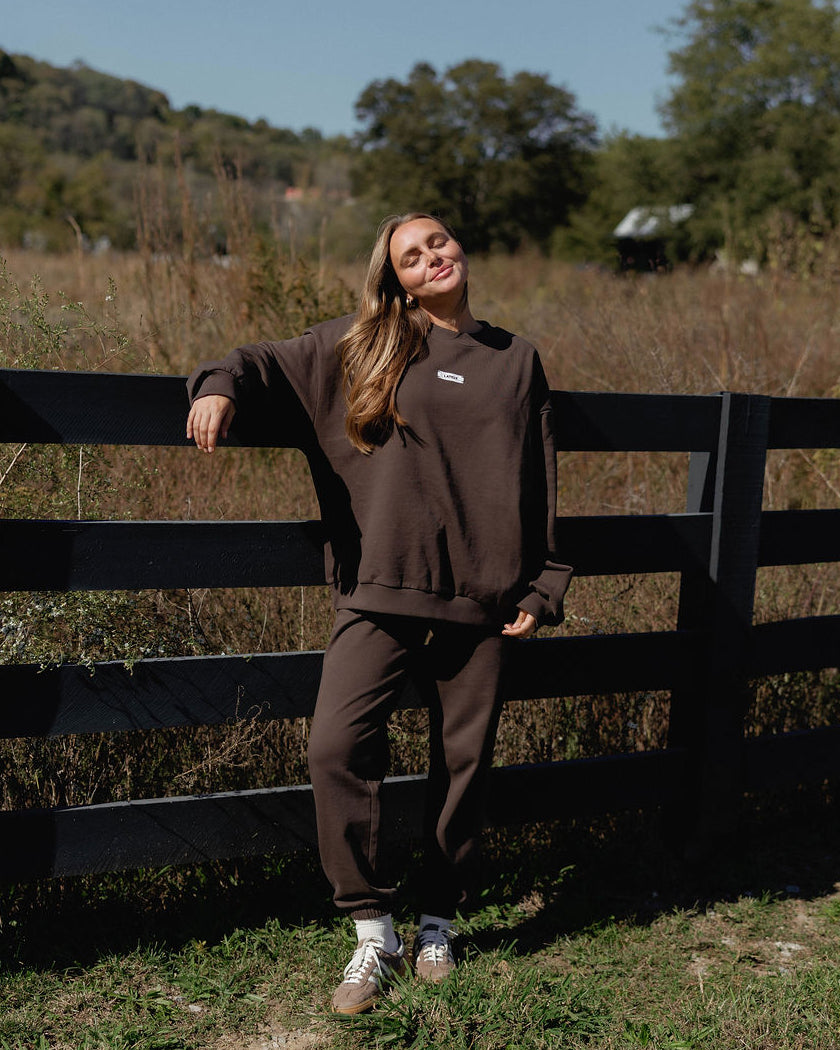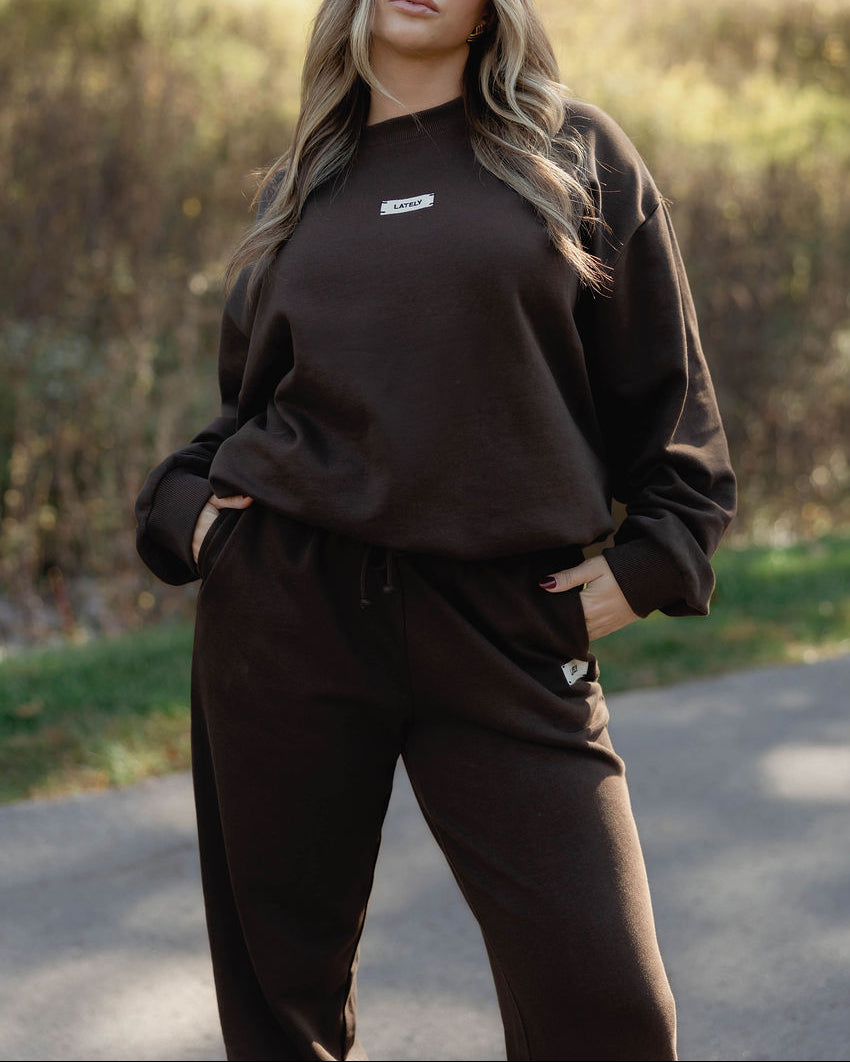 The Mocha Core Crewneck is designed for a slightly oversized fit with an effortlessly chic silhouette. Finished with our signature Lately stitched label.