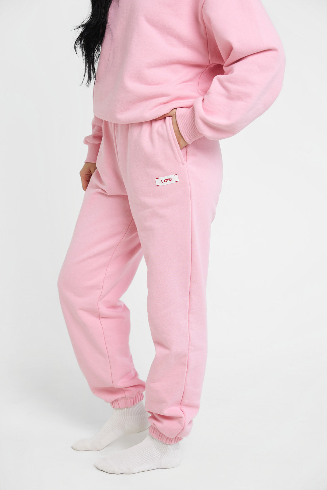 The Lover Core Joggers are designed for a slightly oversized silhouette. Wear them rolled or unrolled for your desired fit, finished with our signature Lately stitched label in red.